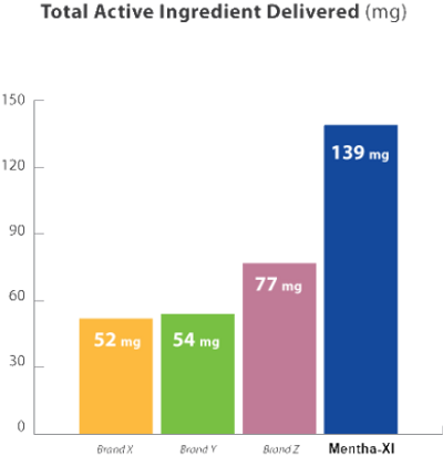 Independent laboratory tests prove Mentha-XL to be nearly twice as potent as the other brands on the market. The graph here indicates Mentha-XL is the best available treatment for IBS.